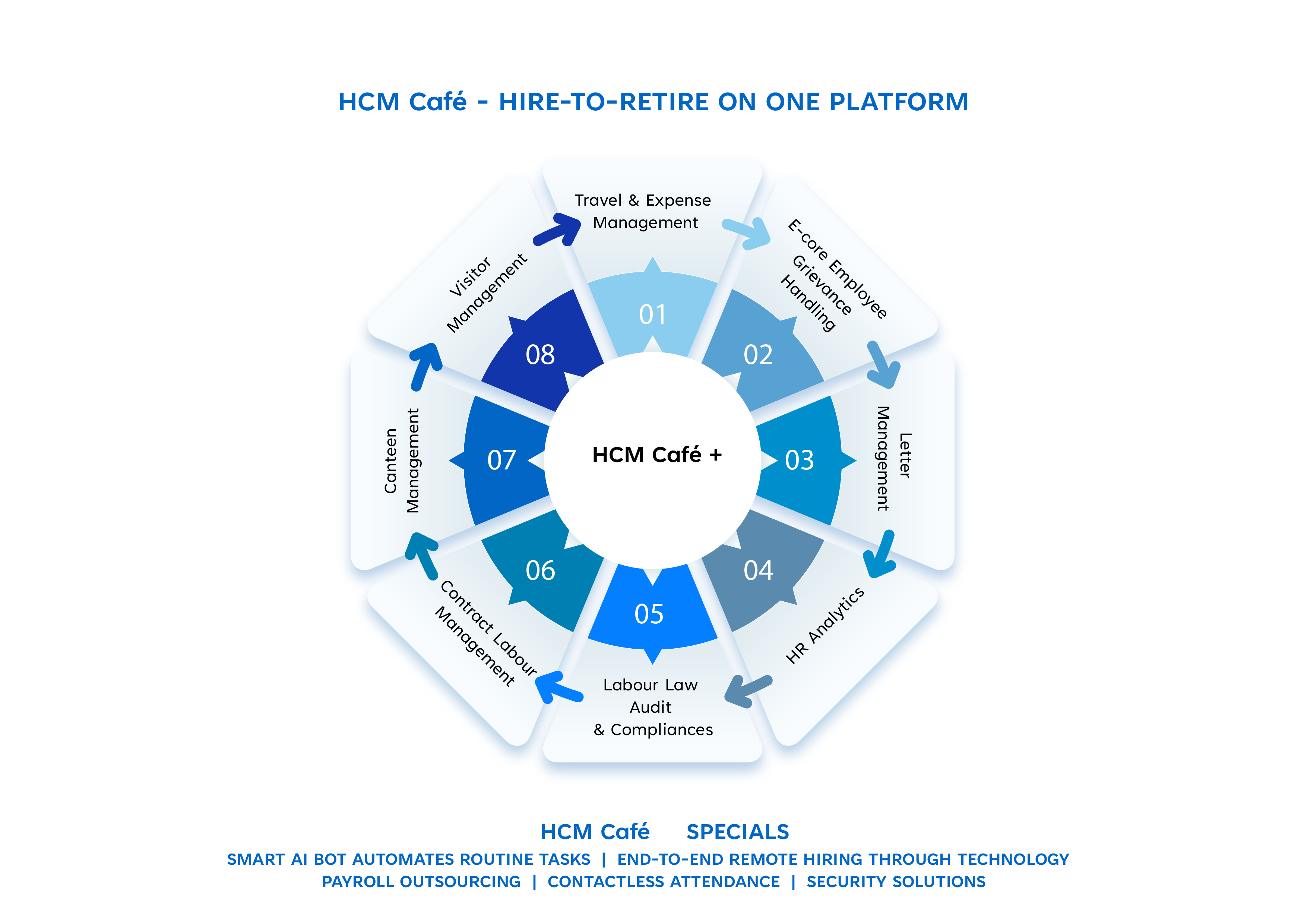 HCM Café is an AI enabled solution that automates, end-to-end, HR processes to improve the employee experience. The solution connects you with the workforce, empowering you to manage your employees efficiently, swiftly and cost-effectively.