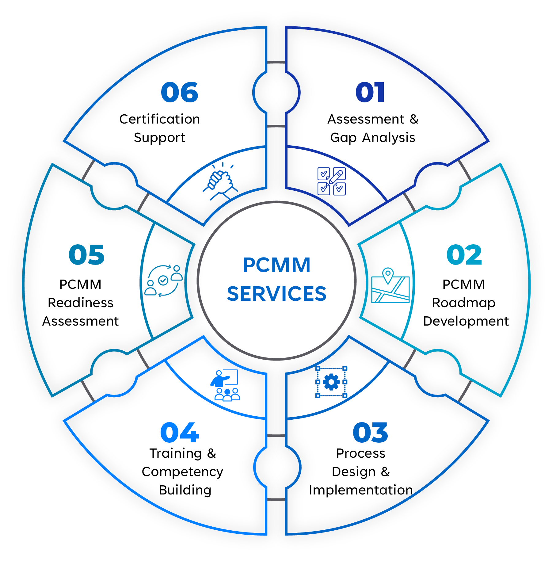 H First offers comprehensive consulting services to guide organizations through the PCMM certification process, enhancing their people management capabilities and aligning their HR practices with global standards.